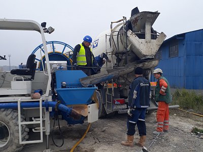 Nedílnou součástí naší společnosti je kromě obchodní také vědecká činnost, díky které se významně podílíme na rozvoji oboru stavebnictví v České republice i ve světě. Koncem října minulého roku jsme v areálu závodu v Plané nad Lužnicí testovali inovovaný stříkaný beton, ve kterém došlo k významné náhradě cementu jiným vápeno-síranovým pojivem na bázi popílku. Hlavní výhodou nového betonu je, že výrobní náklady alternativního pojiva jsou přibližně poloviční a lze jím nahradit významný podíl cementu (až 100%). Alternativní pojivo vyrábí zatím prototypně ČEZ Energetické produkty s.r.o.
