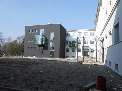| Popis | Cílem projektu je modernizace objektu Ostravské univerzity, který se nachází v areálu bývalé krajské nemocnice v Ostravě Zábřehu. Od svého vybudování na počátku 20. století byl objekt několikrát přestavován a rozšiřován, až se rozrostl do dnešní nesourodé podoby jedno až třípodlažní stavby s různými úrovněmi jednotlivých podlaží. Základní koncepcí řešení a záměrem navržené konstrukce stávajícího objektu je vytvoření plnohodnotné vysokoškolské budovy a vybudování komplexní výukové a výzkumné základny Lékařské fakulty Ostravské univerzity. Výstavbou přístavby a nástavby dochází ke sjednocení výškové úrovně celého objektu a dvůr byl jako hlavní nástupní prostor. Povrchy doplněných hmot jsou v černém odstínu, který v kombinaci s bílými fasádami původních křídel vytváří exkluzivní výraz odpovídající významu budovy. Objekt je rozdělen na tři části, přičemž každá část je řešena jako samostatný objekt. Objekt A: Objekt lékařské fakulty - bude umístěn v severním a východním křídle a nástavbě východního křídla . Objekt B: Objekt IMTO - se bude nacházet v západním křídle s novou přístavbou. Objekt C: Velkokapacitní posluchárna - bude umístěna v severozápadním křídle a v nástavbě tohoto křídla. |