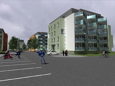 | Description: | Three apartment buildings with 91 housing units and 47 parking spaces in garage halls will meet the requirement of more spacious and better quality living in the greenery. The apartment dispositions will be during the construction adjusted to the clients’ requests. The construction will also improve the traffic situation in the area and will revitalize the public spaces – the new roads and outside parking will be built and the landscaping will be introduced, that will make that part of the town even more pleasant. |