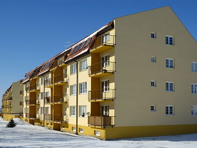 | Popis | Obvodová konstrukce objektu je navržena ze systému Porotherm. Vnitřní nosné konstrukce jsou navrženy slabší než obvodová konstrukce. V suterénu jsou vnitřní nosné zdi navrženy z plných cihel. Pilíře mezi garážovými vraty jsou monolitické, železobetonové. Vnitřní schodiště ve společných prostorách je dvouramenné, železobetonové, monolitické, se zrcadlem. Střešní konstrukce je navržena jako sedlová, zalomená. Střešní krytina je ze systému Meindl, vlnovka Romano.V polozapuštěném podlaží se nachází technické zázemí objektu jako je strojovna ÚT, sklepní kóje, úklidová místnost, sušárna, místnost pro kočárky a kola, garáže pro zhruba 14 osobních automobilů. Každou sekci tvoří 12 bytů. |