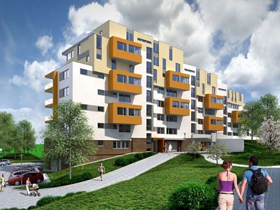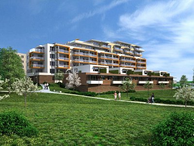 Jedná se o bytový dům, který má 1 podzemní a 8 nadzemních odstupňovaných podlaží. Spodní úrovně domu jsou věnovány garážování, vstupním prostorám, společnému domovnímu vybavení a sklepům pro byty. Bytová podlaží jsou v 2.NP až 8.NP, mezonetová ubytování mají nástup z terasy v 1.NP. Základní skladebnou jednotkou je bytová sekce, složená ze tří stavebních modulů. Každá sekce má ve středovém modulu výtah a schodiště přimknuté k severní straně půdorysu. Tato koncepce poskytuje základní sestavu bytů 1+kk, 2+kk a 3+kk. Řešení sekcí umožňuje případné, klientem vyžádané propojení předsíní bytů 1+kk a 2+kk pro získání větší bytové jednotky či dvougeneračního bytu. Dvoupodlažních mezonetové byty orientované do budoucího parku rozšiřují typologickou škálu možností bydlení v této lokalitě. Dalším stavebním objektem je Přístřešek nad parkovacím stáním – zelená střecha a je navržen tak, aby tvořil opěrnou stěnu násypu zeminy a tím vyrovnával výškový rozdíl prostoru před stávajícím bytovým domem a přístupové komunikace k polyfunkčnímu objektu. Střecha s extenzivní zelení zároveň příznivě rozšiřuje rekreační prostor s dětským hřištěm na horní úrovni. Plocha střechy bude volně přístupná a po obvodu lemována stěnou tvořícím zábradlí. |