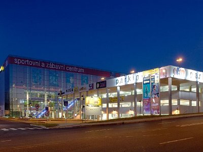 1. podlaží: nákupní středisko GIGASPORT a 25 m dlouhý bazén a regenerační centrum PRO FAKTORY 2. podlaží: fitnesscentrum PRO FAKTORY 3. podlaží: gastronomie a společné prostory 4. - 5. podlaží: 12 multiplex kinosálů VILLAGE CINEMAS s kapacitou 3 500 návštěvníků. Nosnou konstrukci tvoří železobetonový skelet. Vertikální komunikace uvnitř objektu zajišťují 3 dvojice eskalátorů v atriu na všechny výškové úrovně objektu, 2 nákladní výtahy a prosklený panoramatický výtah. Dominantou celého objektu je skleněná terčová fasáda na východní a zčásti na jižní a severní straně objektu. Ostatní obvodové stěny objektu tvoří opláštění provětrávanou fasádou s alucobondovým Objekt je spojen nástupním mostem s přilehlým Parkdeckem a spolu s ním tak tvoří komplexní centrum zábavy s možností parkování. |