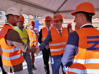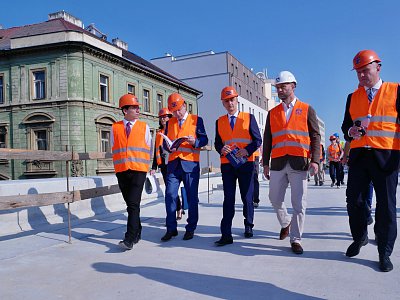 Staveniště v ulici Prvního pluku si 5. června prohlédl ministr dopravy Vladimír Kremlík v doprovodu generálního ředitele SŽDC Jiřího Svobody a našeho předsedy představenstva Tomáše Korandy.
