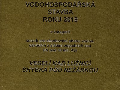 Během setkání konaného pod záštitou Ministra životního prostředí byly vyhlášeny výsledky soutěže Vodohospodářská stavba roku 2018. Naše společnost získala titul Vodohospodářská stavba roku 2018 v kategorii Stavby pro zásobování pitnou vodou, odvádění a čištění odpoadních vod s investicí do 50 mil. Kč. Oceněným projektem se stalo dílo Veselí nad Lužnicí, Shybka pod Nežárkou.