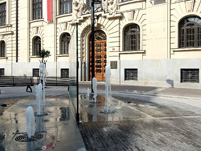 | Description: | The reconstruction of a three-storey and basement building with a high truss and a curb roof includes the construction of new partitions, repair of plaster coats and joiners finish, new wiring including light-current lines, a new floor covering including a mosaic replica, repair of stucco elements and a new built-up roof space. The construction is founded with the help of diaphragm walls 10 m deep. The foundation slab forms the bottom of the vault system; the basement is cast-in-situ reinforced concrete. The four aboveground storeys are also formed by a reinforced concrete structure filled with brickwork. Vault concrete and other safety elements were used for the underground part and 1st aboveground storey. Other building trades also required extra high-quality workmanship. |