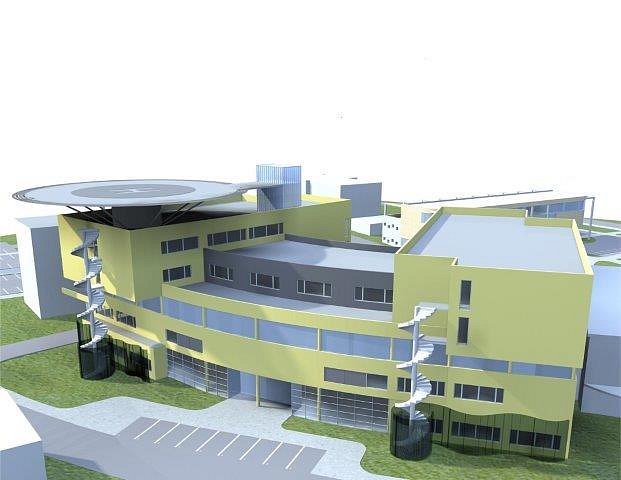 | Popis | Cílem výstavby nového pavilonu je zvýšit dostupnost, kvalitu a efektivitu poskytované zdravotní péče prostřednictvím moderních a technicky vyspělých zdravotnických metod. Vzhledem k havarijnímu stavu byl původní objekt z třicátých let dvacátého století zbourán a na jeho místě roste nová moderně vybavená budova. Objekt je rozdělen do dvou křídel v pravoúhlém rastru o půdorysných rozměrech cca 30 x 18,6 m, propojených obloukovou střední částí a má 1 nadzemní a 5 podzemních podlaží. Na střeše chirurgického pavilonu je umístěn heliport. Nosná konstrukce heliportu je napojena na nosnou konstrukci skeletu v úrovni sedmého nadzemního podlaží. Součástí stavby jsou přípojky inženýrských sítí, zpevněné plochy a sadové úpravy. Po dokončení bude pavilon vybaven zdravotnickou technologií, nábytkem a mobiliářem. Následovat bude nezbytný zkušební provoz. |