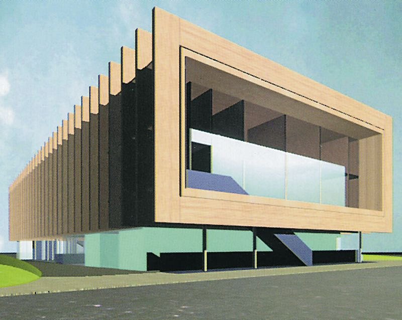 | Description: | The load-bearing structure of the pavilion consists of vertical oblong frames made of glued massive wood which are positioned at intervals and interconnected with longitudinal bracing to form a rigid space beam of massive wooden glued structure. The wooden structure is carried by steel columns with a circular section. The columns are connected to the frames with joints. The roof structure is without pitch, and is sandwich-like and non-ventilated. The western front is all glazed and can be shaded from outside. The eastern front is also glazed, but in a different way: in each module field there is always one panel and one tilting window. The inner space of the exhibition is indivisible. All the surfaces are smooth and the overall shape copies the shape of the structure. The exhibition part of the pavilion can be entered by the escalator, by elevator or from the staircase leading from the covered outside space under the “arch”. The exit is designed in the same way but without the escalator. On the free area in front of the pavilion there are outdoor exhibits and several benches as a place of repose. |