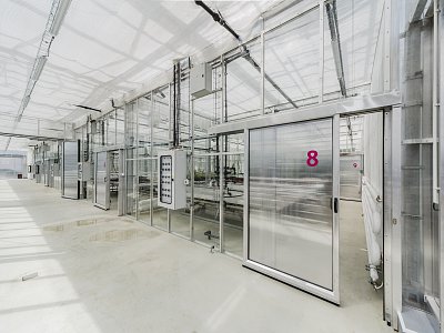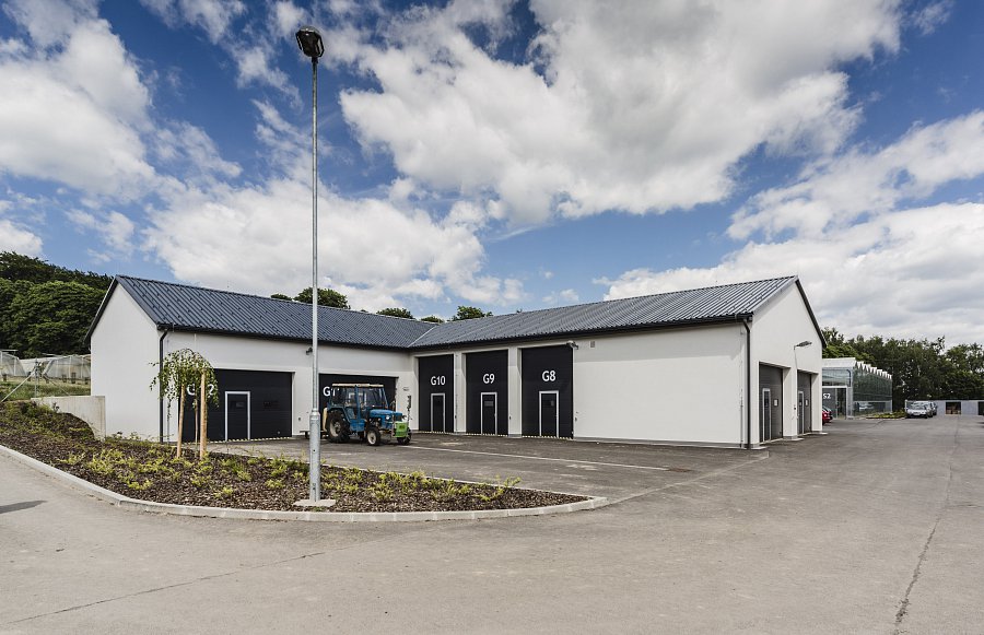 New construction holding offices and laboratores with state-of-the-art equipment and devices; research greenhouse and a garage for farming heavy machinery. The project includes the reconstruction of a hall, which serves as educational and applied research facilityin pomology. |