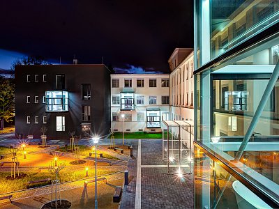 | Popis | Cílem projektu je modernizace objektu Ostravské univerzity, který se nachází v areálu bývalé krajské nemocnice v Ostravě Zábřehu. Od svého vybudování na počátku 20. století byl objekt několikrát přestavován a rozšiřován, až se rozrostl do dnešní nesourodé podoby jedno až třípodlažní stavby s různými úrovněmi jednotlivých podlaží. Základní koncepcí řešení a záměrem navržené konstrukce stávajícího objektu je vytvoření plnohodnotné vysokoškolské budovy a vybudování komplexní výukové a výzkumné základny Lékařské fakulty Ostravské univerzity. Výstavbou přístavby a nástavby dochází ke sjednocení výškové úrovně celého objektu a dvůr byl jako hlavní nástupní prostor. Povrchy doplněných hmot jsou v černém odstínu, který v kombinaci s bílými fasádami původních křídel vytváří exkluzivní výraz odpovídající významu budovy. Objekt je rozdělen na tři části, přičemž každá část je řešena jako samostatný objekt. Objekt A: Objekt lékařské fakulty - bude umístěn v severním a východním křídle a nástavbě východního křídla . Objekt B: Objekt IMTO - se bude nacházet v západním křídle s novou přístavbou. Objekt C: Velkokapacitní posluchárna - bude umístěna v severozápadním křídle a v nástavbě tohoto křídla. |