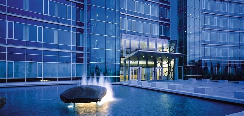 The complex is built-in into the complex of the existing transmitting center which is surrounded by high-quality greenery with English garden elements. New planting, water areas and small architecture interconnect both parts of the complex and thus form a natural relaxation background of the center.