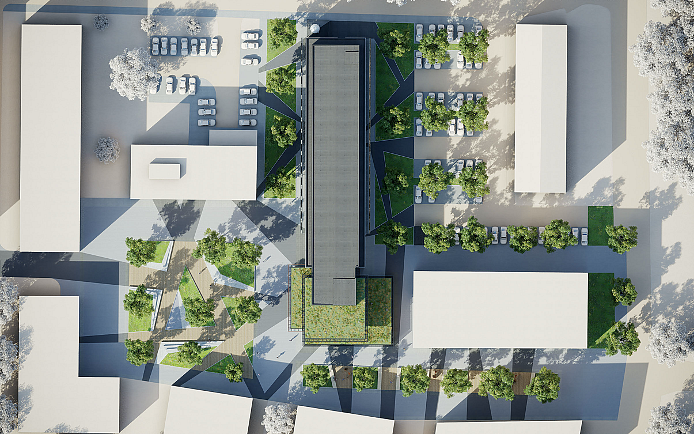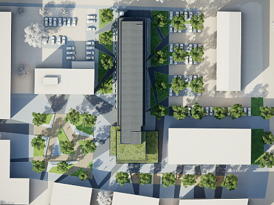 | Description: | Trianon is a commercial administrative building with catering service for the staff and the public and commercial rental areas on the level of the parterre of the entry hall. On the upper floors there will be rentable office space. The three storey underground parking will serve the building. The main eight storey building separates the residential development from Budějovické square. The part facing the residential development has four five storey wings, protruding from the main building and softening the transition between the residential area with the estate tranquil greenery and the main mass of the building. Three of the wings have significantly receding sixth floor. The dominant feature of the corner composition is an eleven storey tower building. It is crowned by receding twelfth technical support floor with a tower clock. The tower is shelled by doubled glass façade. The building does not exceed the surrounding development in the height. The maximum height of the corner tower is 46,2 m. The building is roofed by the flat roofs. On the roofs of the fifth above ground floors and the part of the ninth there will be green roof gardens. The remaining roofs will be planted with xerophilous types of plants. The frontage of the building facing to Budějovická and Vyskočilova streets is on the level of the parterre supplemented by row of commercial rental spaces - shops. They will be appreciated mainly by the public, to which they will be accessible from the access walkway along the Budějovické square. The parterre outside the front façade will be complemented by a row of trees, parking bay and street furniture. The pavement will be paved by a stone mosaic with the strips of dark stone slabs ending with sunken street light. The trees will have a cast iron tree grate. Between the trees in the regular intervals there are stone benches with a wooden seat. Another part of the project is a park, established in the back part of the building. The green areas protrude into the yards of the building and incorporate the building into the surroundings. They ate complemented by the planting of low hedges and perennials in symmetrical ornaments. |