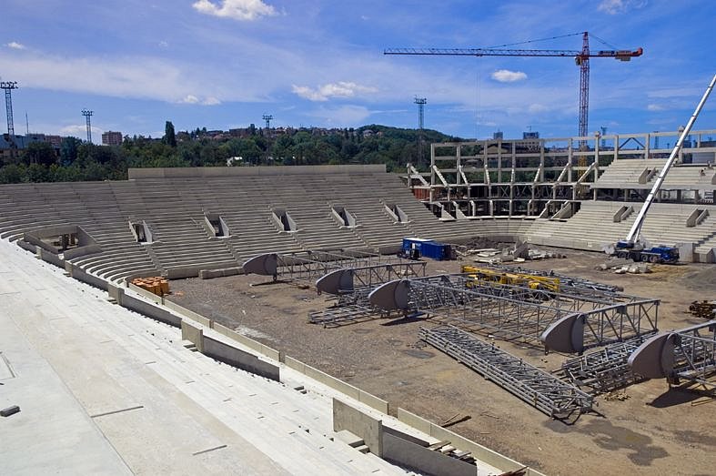 | Description: | Multi-purpose complex houses accommodation, administrative and technical premises, back-office facilities of SK Slavia Prague, commercial premises and stands. The complex also includes internal parking. The stadium will have a capacity of up to 21,000 spectators, who will enter the object through entrance premises and corridors. They will access their seats by pre-cast reinforced concrete steps with epoxide coating. Other surfaces of the stands will be made of concrete with epoxide antiskid coating. The upper part of the stands will hold approximately 40 VIP boxes with frontal unbreakable glass. Part of the stadium will also be changing rooms fro players and referees, including sanitary installation. Stadium´s structure will be founded on reinforced concrete foundations and will carry a roof made of heat galvanized steel covering the spectator premises. Roofing will be made of titanium zinc, which is one of the most durable external materials. Stadium´s glass façade will be complemented by satin anodized aluminium profiles. Other facades will be thermal insulated and with spreaded plaster. Internal walls will be made of Liapor material, ceramic bricks or plaster board in order to prevent sound transmission. Part of the stadium is also a conference center. The administrative part will hold offices with double floors and heavy-duty carpets, sanitary premises and a kitchenette. Commercial premises may be fitted with shops and other sales points. |