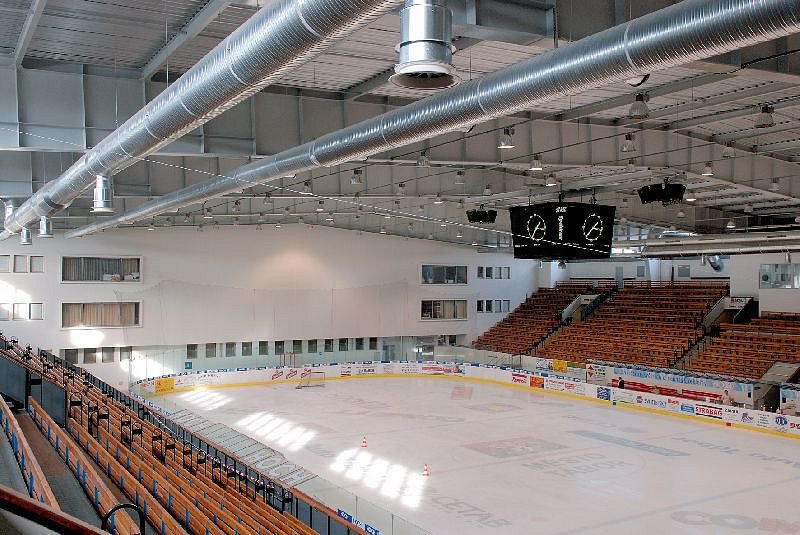 | Description: | The most significant parts of the works were replacement of the outer shell of the building, installation of the hoods above the main staircases, construction of a new clubhouse for the players and sanitary facilities, also an acoustic modification in the hall and extending of the ventilation in the entire building. Original steel structure with hanging glazed sections was reconstructed and completed with a horizontal grill. After the painting, the new sandwich panels of steel coat filled with mineral felt were hung on the outer side of the structure. The construction of the stadium is anchoring the tie rods holding the hoods over the main stadium entrances. It is a combination of the welded steel profiles and clear safety glass. The hoods accentuate the entrances with their rich red coloring. Original radio cabins were demolished an in their place grew a new clubhouse for the players. It is situated in the upper part of the stands and it is predominantly glazed so the players have good visual contact with the playing area. Because the acoustics in the stadium had unpleasant echo, particularly during the sporting matches, the new acoustic cladding was installed in the south and the north sides of the hall. The sporting experience for both players and spectators will be much more enjoyable. Also the ventilation had been extended since it didn´t comply with the strict technical criteria and operation requirements. This concerns the air distribution system over the ice rink and the spectators stalls and the system in the sanitary facilities and machine rooms, built in the east and west terraces. |