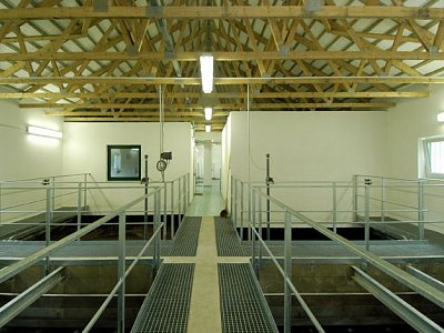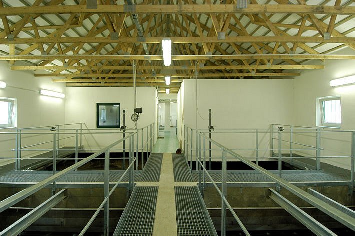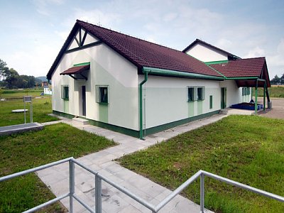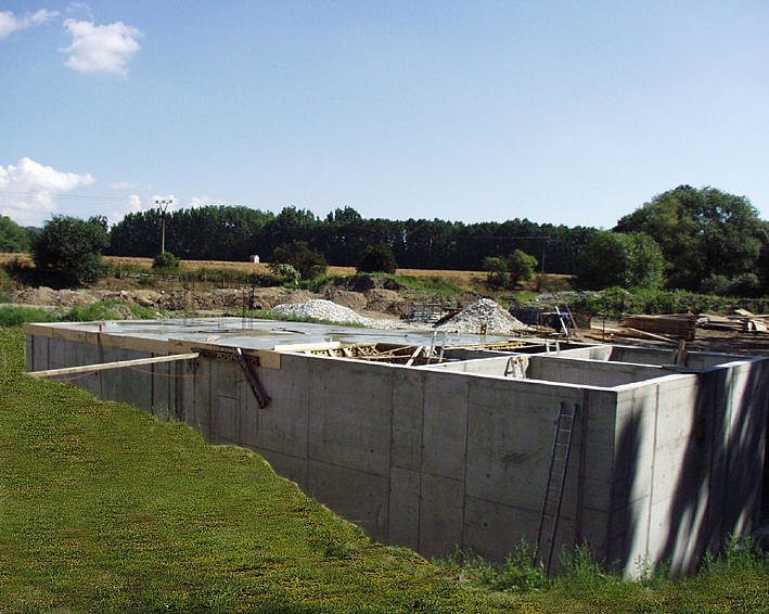 The building of the new treatment plant is adjacent to a previous one, which was damaged by floodwater in 2002. The entire construction complex is formed by the building of a water pumping station, operational rooms and sewers built on the riverbank and in the streets of the town. The operational building of the former structure is only utilised as a workshop; other parts have been dismantled. Demolition of existing reservoirs, preceded by their emptying and cleaning, was conducted without using explosives. The new treatment plant is designed as a system of underground reservoirs made from reinforced concrete. Building work took place whilst the former unit was still in operation. After completion, wastewater was diverted to the new unit. Waste comes from the vicinity of the town and is gravitationally fed by existing sewers, some sections of which were rebuilt but remained unaltered and technological equipment updated. In front of the building is an overflow unit re-directing excess rainwater that would otherwise exceed the capabilities of the plant’s machinery. A pumping station with submersible waste pumps stands on the inlet point of the treatment works. From here, the wastewater advances into a settling tank. A preliminary treatment unit is followed by a point for the distribution of waste, featuring an overflow, where the effluent is separated into two biological waste streams. Operation of the wastewater treatment unit is overseen by a control and information system, incorporating an operator’s workstation, which enables the monitoring, checking and setting of basic technological cleaning parameters. |