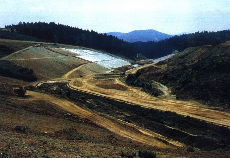 | Description: | The dump is situated on impermeable subsoil and there is a thorough double sealing. The 60-centimetre-high mineral sealing layer is completed with “CARBAFOL-PEHD” foil. The dump has three grades, the height of one grade is 10 metres and the hypotenuse is 30 metres long. The main parts are: the entrance structure with a weighing machine, the garage for the compactor, the sedimenting tank, the capture channels to prevent the penetration of sewage into the dump body, the sump for dump water, monitoring wall with a drill hole, the three-kilometre-long fencing of the whole dump, the access road, the supporting baffles, the pump station and two interconnected biological ponds for the water from the collecting channels of the dump. |