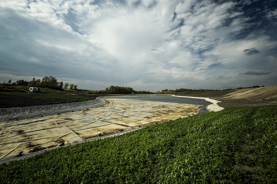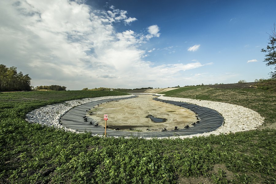 Revitalizace a sanace 27 metrů vysoké haldy na území rozprostírajícím se na ploše 98 hektarů. Před sanací se v haldě nacházely ohniska tzv. termických procesů, které dosahovaly průměrných teplot 50 ºC, místy až 75 ºC. Těleso odvalu vzniklo ukládáním hlušin při dobývání uhlí dolu Jeremenko (dříve Louis) v kombinaci s ukládáním hutních odpadů. Výška odvalu činí na většině plochy 20-25 m, na východní straně až 30 m. Na hlušinu obsahující zbytky uhlí byla lita horká struska a halda začala hořet. Naší činností došlo k eliminaci procesu hoření a k poklesu měřených teplot v tělese haldy. V rámci stavby jsme osadili 320 měřicích sond na úseku o délce 6,63 km. Po provedení monitorovacích vrtů a termického monitoringu bylo rozhodnuto o umístění 645 sanačních vrtů na délce 15,98 km. Do těchto vpravován inertní materiál – popílková suspenze. K omezení přístupu vzduchu do tělesa haldy byla současně vybudována souvislá vodní plocha o ploše 44800 m2 a objemem 180000 m3 a rozprostření těsnícího jílu na ploše cca 15,2 ha. Současně byly provedeny terénní úpravy, navezení humusu a osázení plochy zelení či vytvoření malé vodní nádrži o ploše 920 m2 a objemu 350 m3 s výsadbou vlhkomilných rostlin, vytvářejících vhodné prostředí pro živočichy. Obnova biotopu byla rovněž důležitou součásti rekultivace. Po celou dobu výstavby byl zajištěn dozor biologa, který sledoval výskyt ohrožených živočichů, kteří se i v tomto území „zabydleli“. Během výstavby byl zaznamenán výskyt ještěrky obecné, ropuchy zelené, skokana hnědého, kuňky žlutobřiché, skokana skřehotavého. Skokan skřehotavý byl rovněž prvním živočichem, který se nastěhoval do nově vybudovaného jezera. |