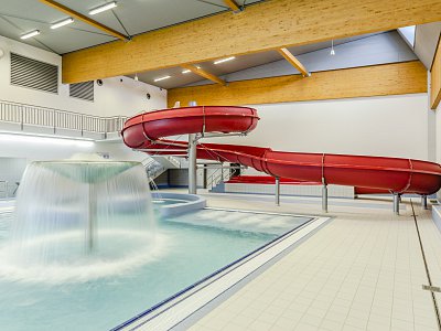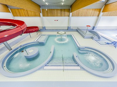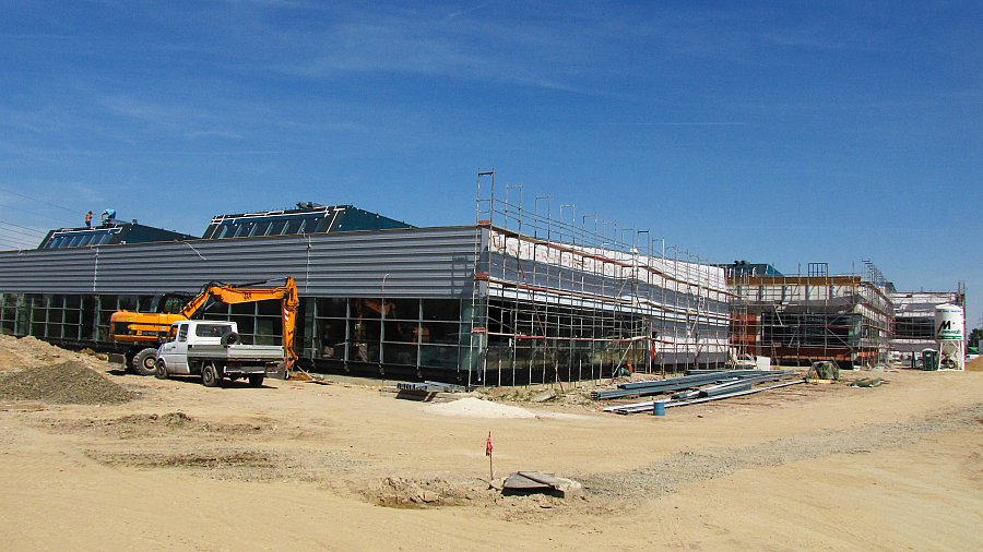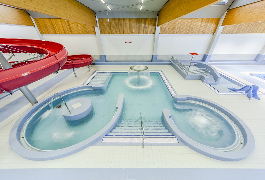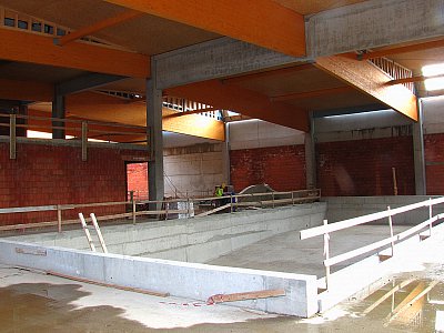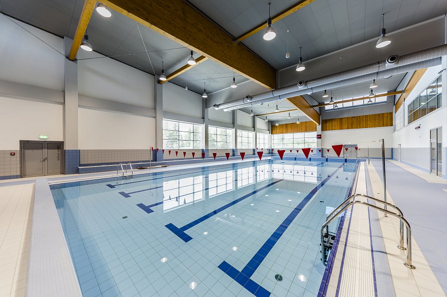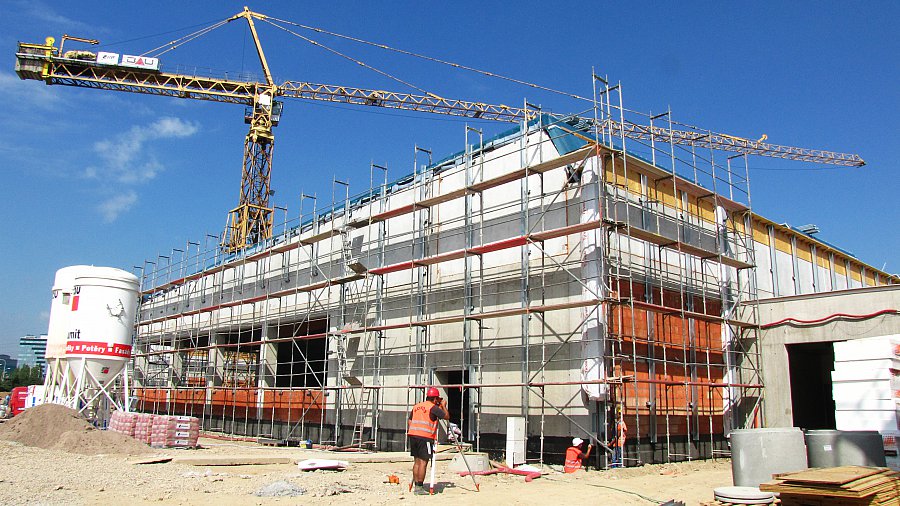 Multifunkční sportoviště Jedenáctka VS na Praze 11. Areál zaujímá plochu o výměře 76 tisíc metrů čtverečních. Tři haly nabízejí sportovně-rekreační vyžití pro širokou veřejnost. Multifunkční hala Hala A - o rozměrech 64x38 metru s umělým povrchem – slouží k rekreačnímu i výkonnostnímu hraní míčových her sálových sportů. Sportoviště poskytuje zázemí badmintonistům, házenkářům, basketbalistům, volejbalistům, florbalistům a sálový fotbalistům. V hale je také možné pořádat kulturní akce, které pojmou až 320 sedících diváků. Hala nabízí zázemí pro pořádání konferencí a předváděcích akcí. Bazénové haly Objekt první bazénové haly tvoří pětadvacetimetrový bazén pro kondiční plavání a rovněž rekreační bazén s řadou vodních atrakcí - divoká řeka, perličková sedátka, perličková lehátka, chrliče a dětské brouzdaliště. Zajímavostí je hydraulický zvedák pro handicapované. V severní části bazénové haly je tobogán s otevřeným tubusem o průměru 1,2 metru. Ve druhém nadzemním podlaží je "mokrá" i "suchá" restaurace. Vstup do vodního světa má samostatnou recepci, turnikety a branku pro imobilní návštěvníky. Odhadovaná kapacita všech tří hal je 600–700 osob. V druhé hale bazénu je zázemí pro kojence s rodiči a pro výuku neplavců z mateřských škol, pro cvičení a rehabilitaci. Každý z bazénů je v samostatné místnosti s vlastním zázemím. Celkově se zde nachází čtyři nerezové bazény o hloubce 80 – 120 centimetrů, a sice dvěma o rozměrech 6 x 9 metru a dvěma o rozměrech 4,5 x 4,5 metru, v těsné blízkosti se pak nachází herna se zázemím a občerstvením. Nikde jinde v České republice není v takovém rozsahu zázemí pro plavání malých dětí. 4Na projektu Jedenáctka VS se sešlo jedenáct stavebních prací patřící pod hlavičku HOCHTIEF CZ – od elektrikářů, obkladačů, tesárny, zámečníků, monolitů, prefa montáže, středisko TZB, oplocení a buňkoviště, po zemní práce, komunikace a finální úpravy terénu divizí Dopravní stavby. Technickou zajímavostí je použití plechů fasády, které jsou v převážné většině beze spojů. Instalaci předbíhala jejich vlastní výroba – až 38 metrů dlouhé a 33 centimetrů široké díly se falcovaly a formátovaly přímo na stavbě. U projektu je použito celkem 9 000 m² keramických obkladů a dlažeb. Rozpětí nosné konstrukce v halách je 9 metrů. Jde o unikátní rozpětí dřevěných nosníků, které se běžně v prostoru bazénů nepoužívají. Součástí areálu Jedenáctka VS je venkovní parkoviště s kapacitou 250 stání. Zařízení bazénové technologie je plně automatizované a řízené z velína. Je trvale hlídáno z dohledového centra včetně řízení a kontroly chlorového hospodářství. Z důvodu bezpečnosti je technologie hlídána taktéž přes systém měření a regulace z dohledového centra investora. Podle hygienických předpisů je nutné vyměnit 36 litrů na osobu/den u 25 metrového bazénu s teplotou do 28°C a 45 litrů na osobu/den u ostatních bazénů s teplotou nad 28°C. |