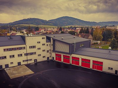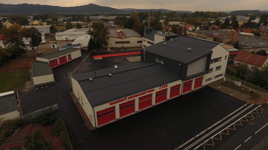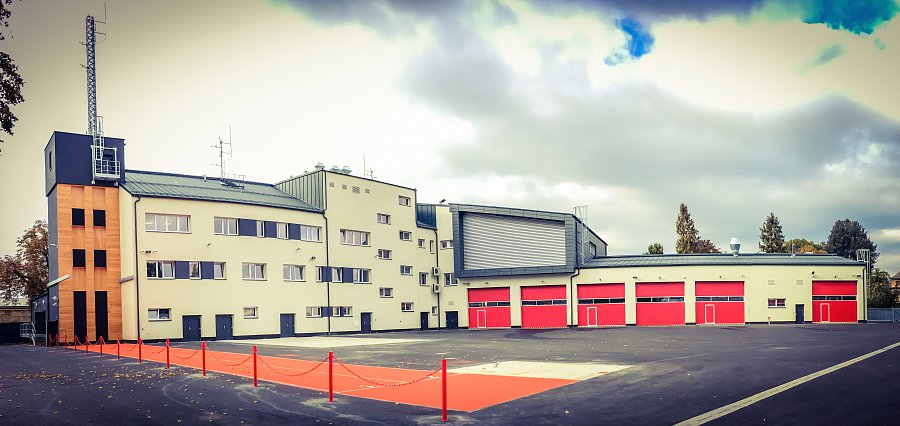 Jednalo se o výstavbu centrální požární stanice, která se skládá ze tří stavebních objektů (SO 01A Hlavní budova, SO 01B Garáže a SO 01C Sklady+kolárna) a ze souvisejících inženýrských sítí, komunikací a zpevněných ploch. V první fázi došlo k demolici všech stávajících objektů a na stejném místě bylo následně vybudováno odpovídající zázemí pro jednotku požární ochrany, garáže pro požární techniku, dílny speciálních služeb, tj. strojní, chemické, technické a spojové, prostory pro výkon státní správy či sklad materiálu humanitární pomoci. Dílo za 97 mil. Kč se bylo realizováno během 420 dnů. |