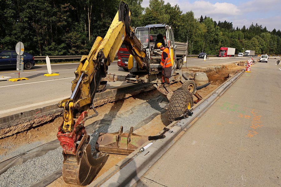 V rámci sdružení tří firem se společnost HOCHTIEF CZ a. s. podílela na druhé etapě celkové modernizace dálnice D1. Po provedení oprav před stavbou a provizorního rozšíření jízdních pásů byly nejdříve realizovány práce ve středním dělicím pásu. Tyto zahrnovaly rekonstrukci kanalizace a kompletní výměnu elektrického vedení. Po zimní pauze následovala modernizace levého jízdního pásu spočívající v demolici cementobetonových povrchů, úpravy podkladních vrstev a položení nového povrchu. Následná instalace trvalého dopravního značení, nových svodidel a ostatních vodicích záchytných systémů znamenala dokončení prací na levém jízdním pásu. Poté byla doprava převedena na nově zrekonstruovaný pás a obdobné práce probíhají i na pravém jízdním pásu. |