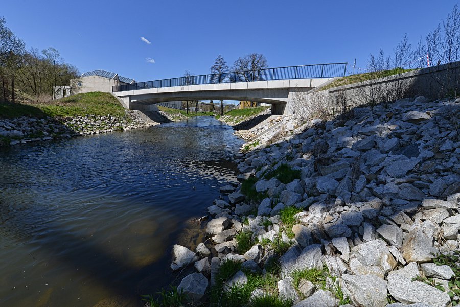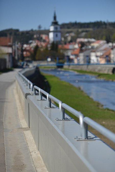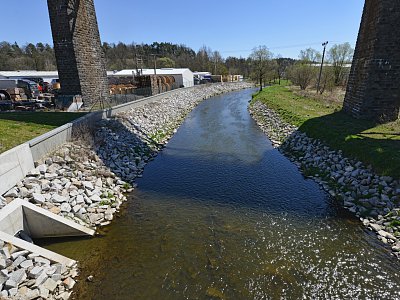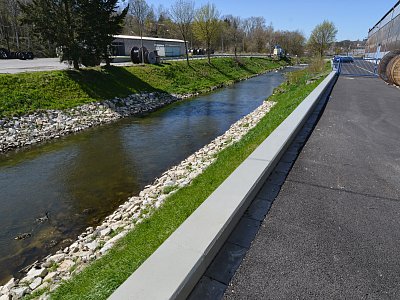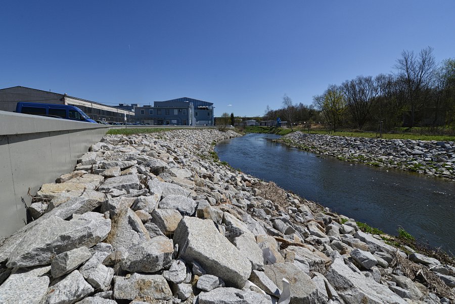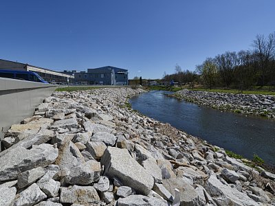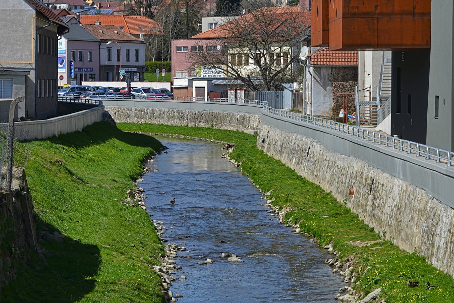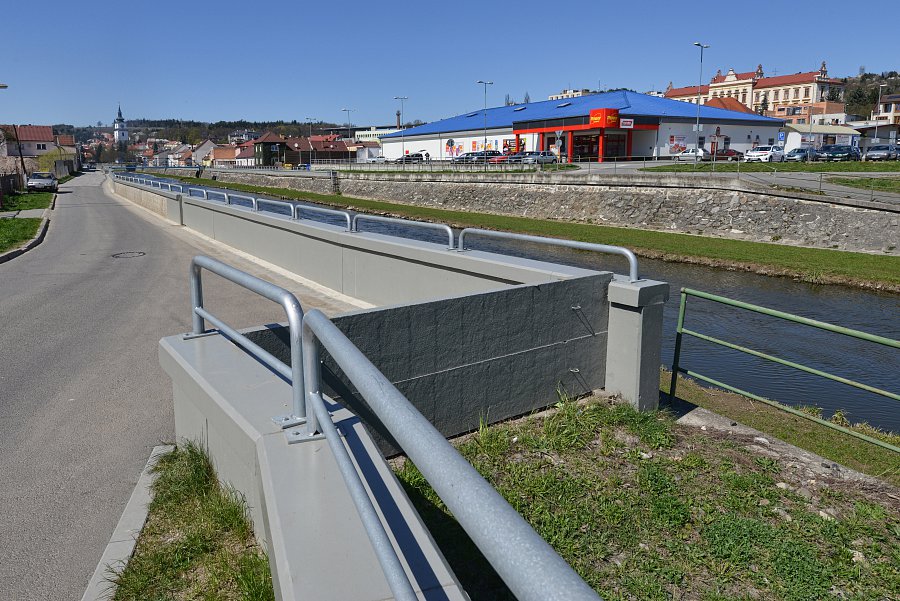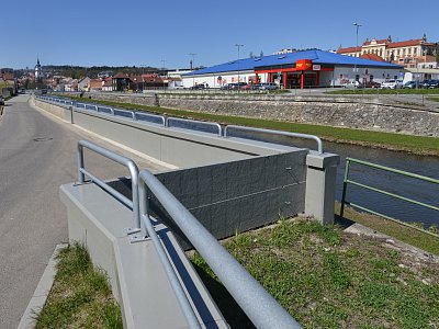 Vybudování systému protipovodňových opatření chránících město před stoletou vodou. Projekt zahrnoval úpravy koryt řek Oslavy a Balinky. Výstavba protipovodňových zídek v délce 1,5 km na toku Balinka a 2 km na toku Oslava. Zídky jsou železobetonové a v místech přejezdů či vstupů do toku jsou použity mobilní hrazení. Dále na toku Oslava došlo k demolici stávajícího jezu a výstavbě nového vakového jezu, kterým je možné regulovat výšku hladiny v nadjezí. V části nadjezí a podjezí se odtěžovaly sedimenty z vodního toku Oslava a také na Balince se odtěžily sedimenty v místě před náměstím. V areálu společnosti NKT Kables se zdemoloval stávající most a postavil nový most přes Oslavu. V části nad a pod mostem bylo zrealizováno opevnění břehů pomocí kamenných pohozů a záhozů. |
