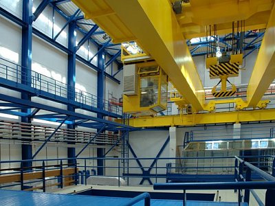 | Description: | It is a one-storeyed, one-bodied hall with combined construction system consisting of fixed reinforced concrete columns and steel roof construction. The strength in both transversal and longitudinal direction is ensured through fixing of reinforced concrete columns into the two level reinforced concrete footing and joint bracing at the level of crane girders, roof construction and columns. The columns carry the crane girders for the handling crane 130/10t, roof steel lattice girders, roof construction with ventilating roof lights – one longitudinal in the hall area, and 5 transversal in the intake area. The building serves the purpose of intake, preparation of storage and actual storage of the containers. The intake area interconnects with the handling area via approach track using handling and transport corridor. The reinforced concrete structure of the building is made of columns partially founded on piles. The intake area includes inbuilt structures made of both reinforced concrete and standard materials that are further used for operation, storage, control and sanitary purposes. The visitor area is also being built. The actual storage area is separated from the intake area through a shield wall with an opening for shifting of containers. The nuclear waste storage area has reinforced concrete panel sheathing, the ventilation of the hall is ensured through natural aeration using floor and roof ventilation shutters. |