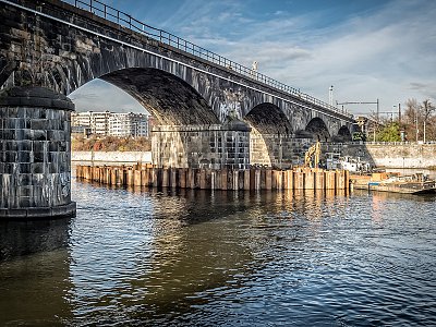 If it were not for the Charles Bridge, the Negrelli’s Viaduct would be the oldest bridge in Prague. It has one primacy nonetheless – it is the first Prague railway bridge across the Vltava River. In 1845–1849, up to 3,000 Czech, German and Italian workers participated in its construction. Alois Negrelli himself, who was assigned to build a railway from Vienna to Prague and to Děčín came from South Tyrol. The 1,120 m long viaduct had no competitor in Europe for more than fifty years. It consists of 87 arches, 77 of which are of sandstone and 8 of granite (over the river). Open without any restrictions, it survived the floods in 1865, 1890 and 2002. That was because it had been designed based on fresh experience with a flood in 1845. In 1873, “Karlín Connecting Viaduct” was completed. It is 351 m long and consists of 26 arches – 10 of stone and 16 of brick. It connects Bubny with Libeň without the necessity of going to the Masaryk Railway Station. That is the historical and cultural importance of this construction, on which a JV of the companies Hochtief, Strabag and Avers will carry out this project. The bridge has been open for more than 160 years without any major reconstruction works. The reason for the current one is the fact that the bridge structure is in a critical condition, the superstructure is no longer meeting the standards and the signalling and security systems, power cables and overhead lines are obsolete. The reconstruction will bring