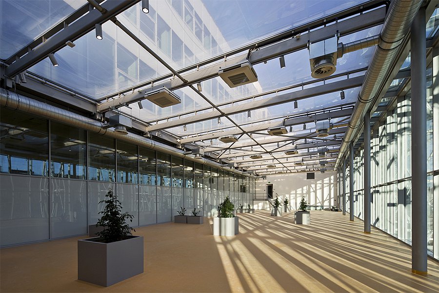 Cross-disciplinary IT science has a new seat in a building of top technical and architectural parameters. The building uses a number of state-of-the-art technologies, of which the “inflatable facade” of transparent membrane is the most striking visual feature.