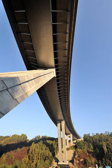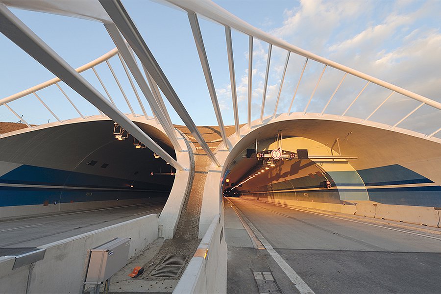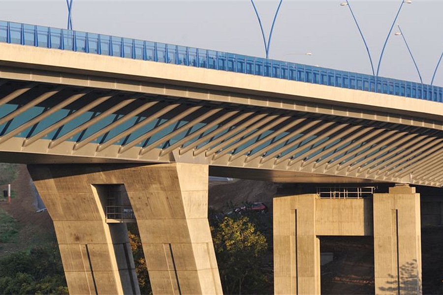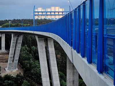 The highest bridge in Prague spans over the Berounka River Valley. Twenty thousand tons of steel and concrete support unconventionally inclined pillars so that the concrete piles would not interfere with the natural monument located under the bridge.The light at the end of the Lochkov Tunnel was first seen by the drivers at the Prague Ring Road on 20 September 2010. Near a cement plant in Radotín, two separate tunnel tubes continue to the flyover bridge and interchange with a slip road towards Strakonice.