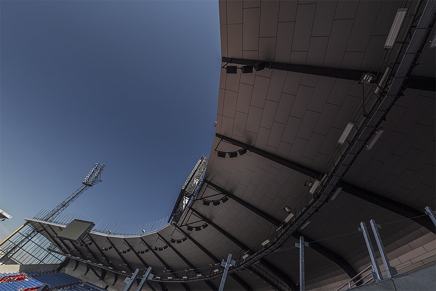 The second stage of repairs of the Vítkovice stadium comprises roofing of the Northern and Southern arches of the stands, refurbishment of sanitary facilities, canteens and press centre facilities. The first stage covered a brand new roofed stand for more than five thousand seated spectators, an innovated tartan track or entrance to the stadium. After the overall reconstruction, the stadium will thus have 15,000 fully roofed seats. From the season 2015/2016 the municipal stadium is also fully prepared for hosting national or international soccer matches. The complex meets all sports, operational and safety conditions of the Soccer Association of the Czech Republic. The new stadium is equipped with a fully functional camera system monitoring all facilities of the stadium and the grounds around it and also with a name-specific ticket system and an easier access for the law-enforcement authorities in case the fans are on the rampage |