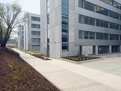 An office complex with rough above-ground area of 43 000 m² was constructed according to the design of Ing. akad. arch. Michal Gabriel. Height of the building is not uniform – the east wing is dominating by its eleven floors and remaining three wings have six floors. The object has approximately 700 parking spaces in underground garages. Building is designed in a comb-like shape, which wittily corresponds to the name of one of the adjacent streets – Na Hřebenech II (Combs II). This is a unique place in surrounding development, complemented by greenery in immediate vicinity of the building. Owing to the excellent accessibility, Kavčí Hory are one of the best locations for offices that are currently offered in Prague. |