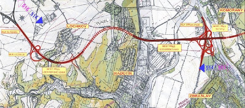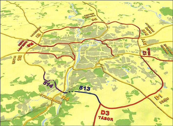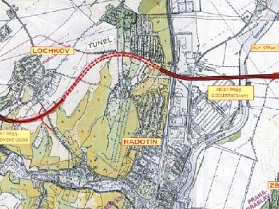 | Description: | The ring route will include a steel bridge over the Lochkovské Valley – behind the Radotín cement factory, two parallel tunnel tubes with the length of 1.5 km – three-lane ascending and two lane descending, a two kilometer long flyover bridge over the Berounka Valley and a large interchange crossroad with Strakonická slip road. |