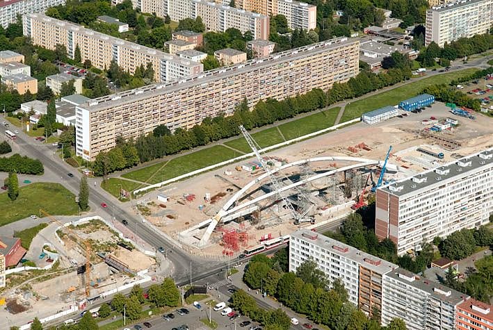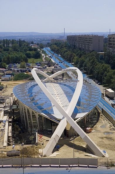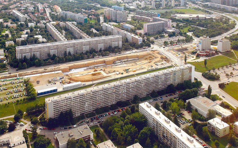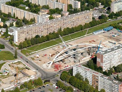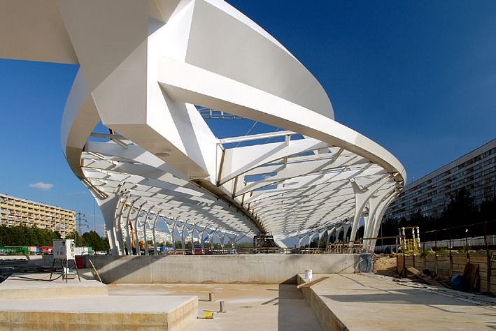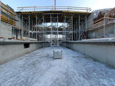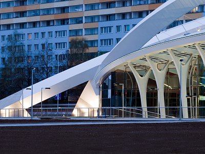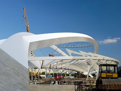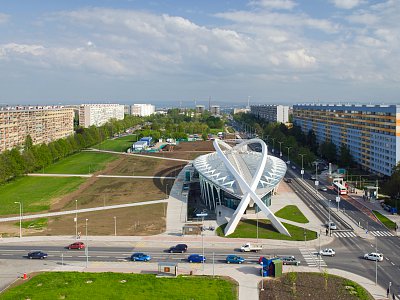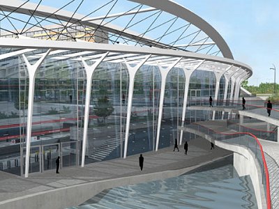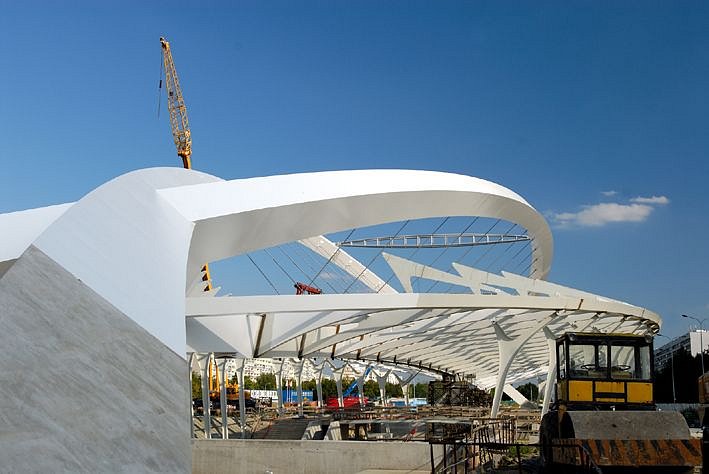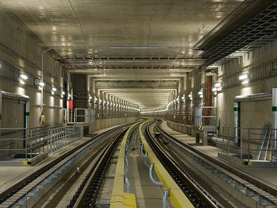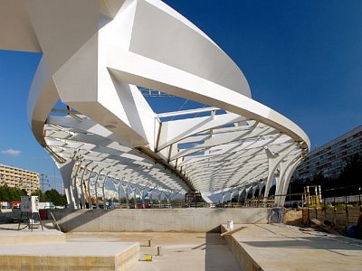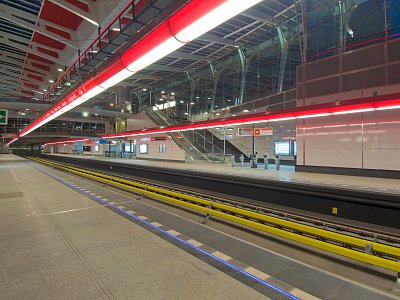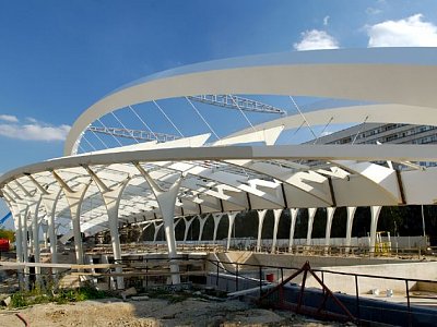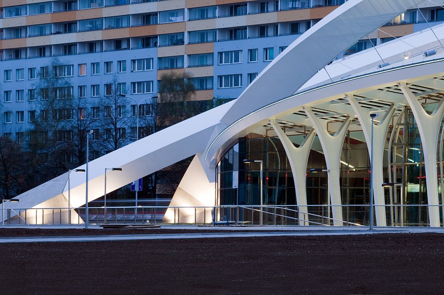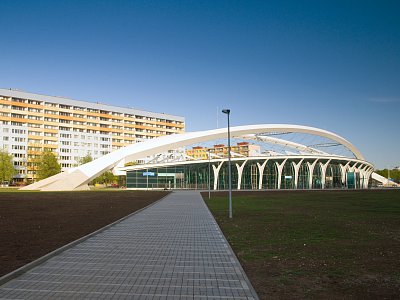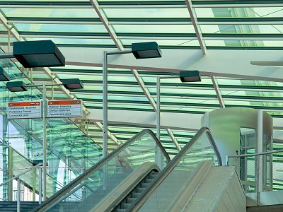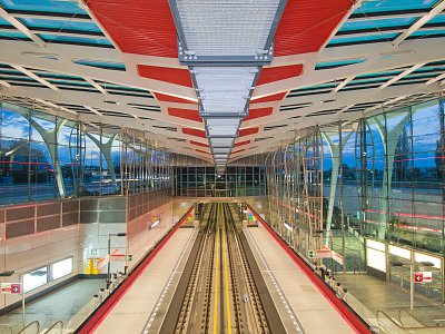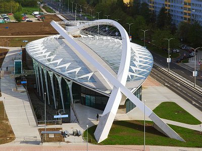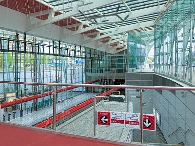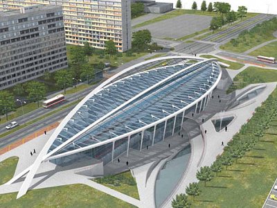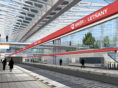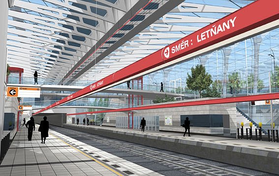 | Description: | The second stage consists of 3 stations and relevant tunnel sections. The stations itself is a distinctive architectonic object designed by Ing. Arch. Patrik Kotas. It is a surface (excavated) station, in which the bottom construction is solved as a classic ferroconcrete construction. The most distinct part of the construction is the steel set of hogging girders (span approx. 160m), suspended glazed roof and glazed façade. The station project includes terrain alteration of the entrance area with elevated footbridges for pedestrians and water cascades. Park-and-ride yard will also be constructed. |