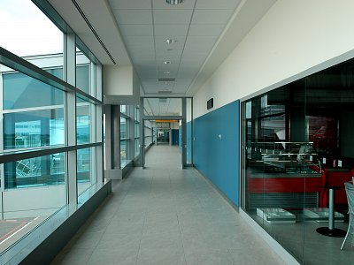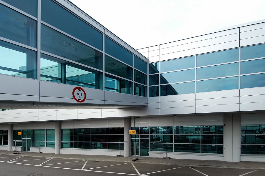 The 1st underground storey is on the level of the airport area, 1st and 2nd aboveground storeys are cantilevered. Finger C is directly connected with Terminal 2 North. With the connecting neck, Finger C is linked by means of a ramp on the 1st aboveground storey.