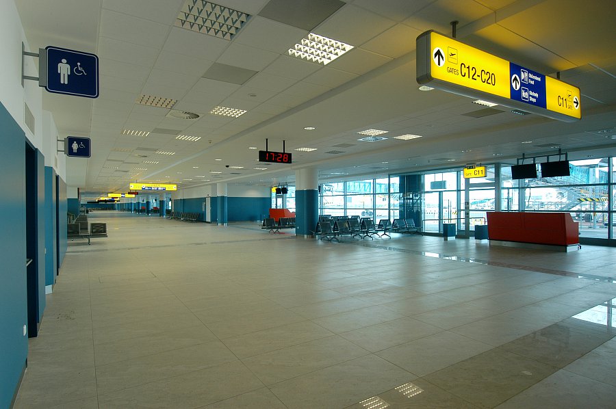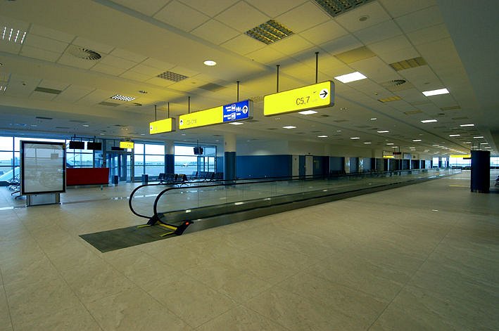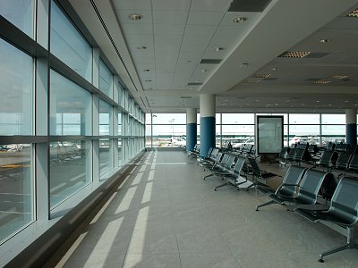 Finger C is a continuation of the concept of boarding fingers A and B and its specific feature is the separation of arriving passengers from departing passengers (to conform to the so- called Schengen Agreements). Finger C is designed as a three-storey structure above a rectangular layout (about 222.5m by 35.5m, average height 16m).