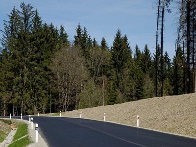 The traffic situation in the section Vyšší Brod - Lipno is very difficult– there are two two-way curves with evidently insufficient radius. In the last few years several serious accidents with tragic consequences occurred here.