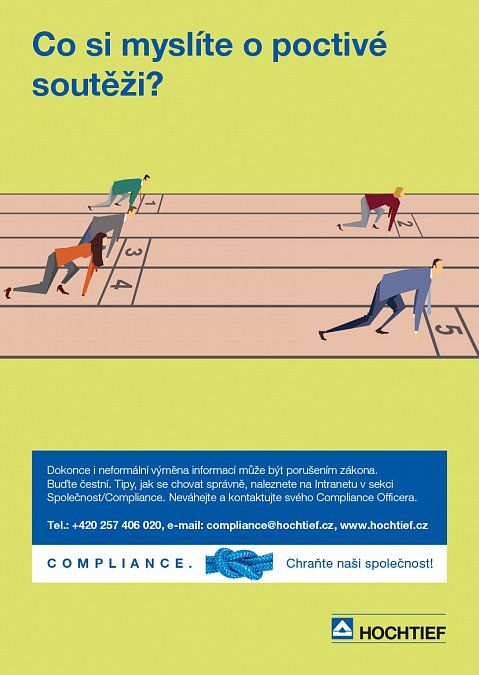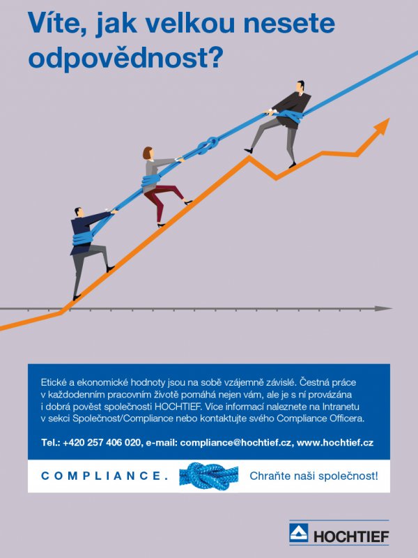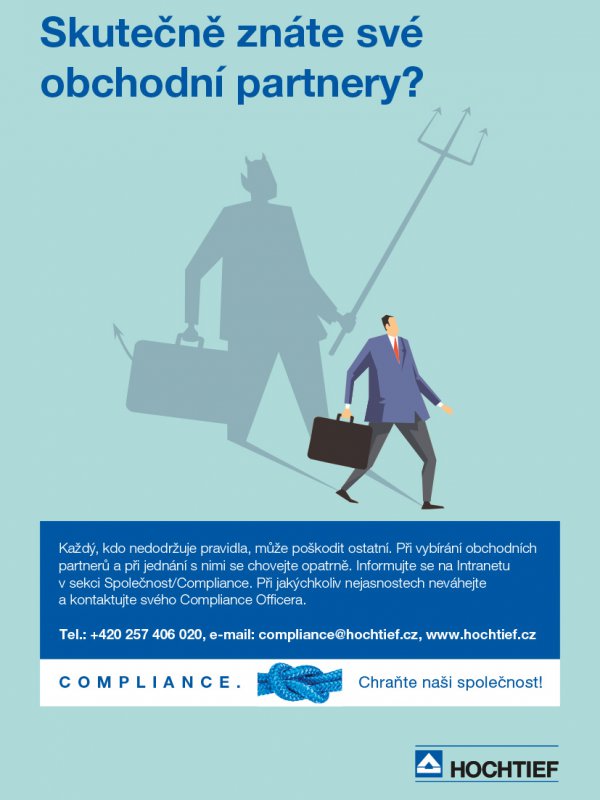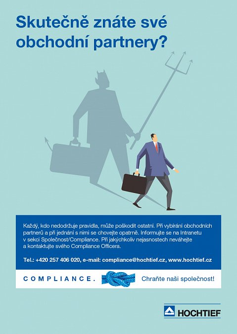 Jako mezinárodně úspěšná společnost působíme v mnoha různých politických systémech a jurisdikcích. Ochrana a udržování dobrého jména společnosti HOCHTIEF je pro nás nejvyšší prioritou. Každý zaměstnanec proto musí být schopen dělat správnou věc. Nezákonným obchodním praktikám je třeba se bez výjimky vyhýbat. HOCHTIEF proto zavedl Compliance systém, aby se této výzvě co nejlépe postavil.