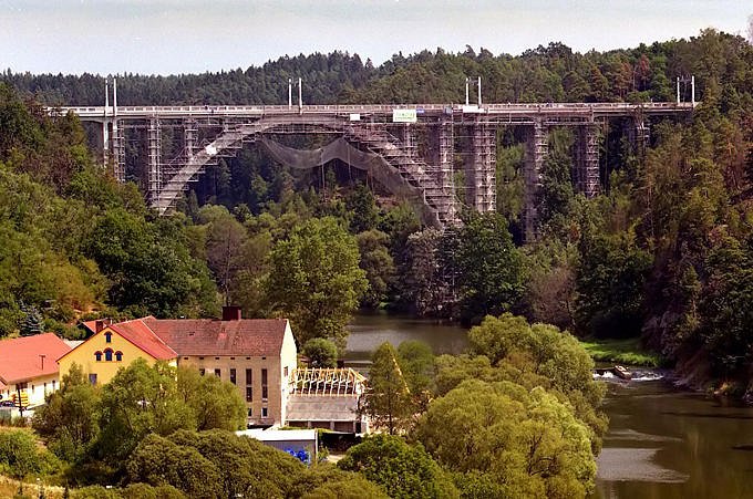 | Popis | Vzácný železobetonový most přes Lužnici, který je na soupisu technických památek je již částečně zakryt lešením. To postavil HOCHTIEF VSB a.s. divize 9 o.z., protože takový rozsah prací zvládne v republice pouze několik renomovaných lešenářských firem a HOCHTIEF VSB a.s. divize 9 o.z. mezi ně zajisté patří. Most byl otevřen v červenci 2004, oprava však trvala až do října 2004. |