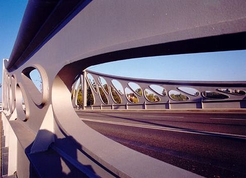 Ocelový most městské pozemní komunikace přes řeku Vltavu v Českých Budějovicích. Před jeho výstavbou byl nejprve starý ocelový most příčně přesunut o 18 m proti vodě do polohy provizorní komunikace.