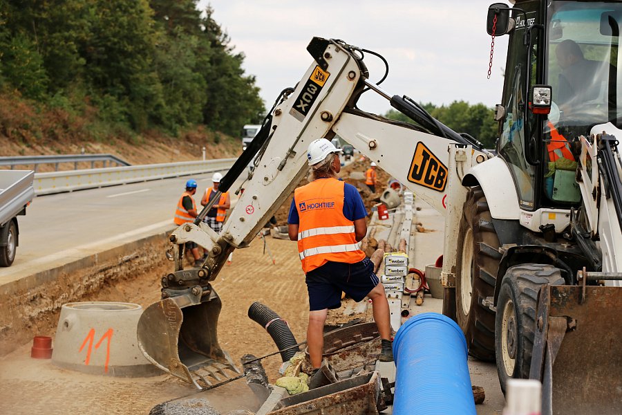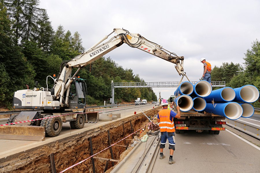 V rámci sdružení tří firem se společnost HOCHTIEF CZ a. s. podílela na druhé etapě celkové modernizace dálnice D1. Po provedení oprav před stavbou a provizorního rozšíření jízdních pásů byly nejdříve realizovány práce ve středním dělicím pásu. Tyto zahrnovaly rekonstrukci kanalizace a kompletní výměnu elektrického vedení. Po zimní pauze následovala modernizace levého jízdního pásu spočívající v demolici cementobetonových povrchů, úpravy podkladních vrstev a položení nového povrchu. Následná instalace trvalého dopravního značení, nových svodidel a ostatních vodicích záchytných systémů znamenala dokončení prací na levém jízdním pásu. Poté byla doprava převedena na nově zrekonstruovaný pás a obdobné práce probíhají i na pravém jízdním pásu. |
