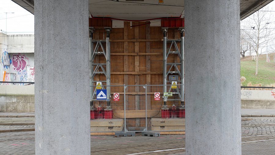 Praha, Podepření mostu X022 Bubenská u metra Vltavská