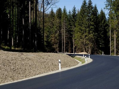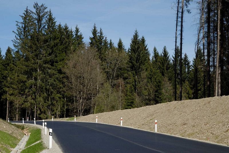 Silnice tvoří hranici přírodního parku Vyšebrodsko. |