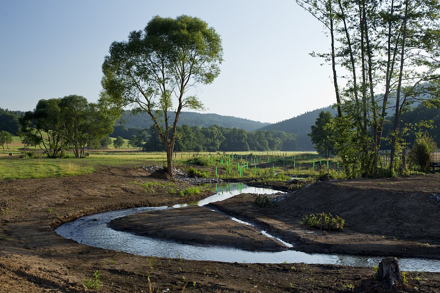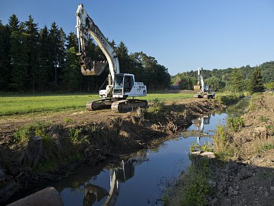 Předmětem díla byla revitalizace koryta vodního toku říčky Loděnice délky 1840 m, a to od silničního mostu v obci Nenačovice až po napojení na stávající koryto pod Kalousovo mlýnem. Principem úprav byl návrat k přirozenému rozvolněnému a členitému charakteru vodního toku. V rámci díla byly v zájmovém území prováděny rozsáhlé zemní práce a záhozy lomovým kamenem, doplněny průtočné a neprůtočné tůně, brod, skluz a významné vegetační úpravy. Celková plocha trvale dotčených pozemků pásu revitalizovaného koryta činí cca 37 500 m2. |