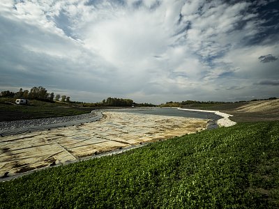 Revitalizace a sanace 27 metrů vysoké haldy na území rozprostírajícím se na ploše 98 hektarů. Před sanací se v haldě nacházely ohniska tzv. termických procesů, které dosahovaly průměrných teplot 50 ºC, místy až 75 ºC. Těleso odvalu vzniklo ukládáním hlušin při dobývání uhlí dolu Jeremenko (dříve Louis) v kombinaci s ukládáním hutních odpadů. Výška odvalu činí na většině plochy 20-25 m, na východní straně až 30 m. Na hlušinu obsahující zbytky uhlí byla lita horká struska a halda začala hořet. Naší činností došlo k eliminaci procesu hoření a k poklesu měřených teplot v tělese haldy. V rámci stavby jsme osadili 320 měřicích sond na úseku o délce 6,63 km. Po provedení monitorovacích vrtů a termického monitoringu bylo rozhodnuto o umístění 645 sanačních vrtů na délce 15,98 km. Do těchto vpravován inertní materiál – popílková suspenze. K omezení přístupu vzduchu do tělesa haldy byla současně vybudována souvislá vodní plocha o ploše 44800 m2 a objemem 180000 m3 a rozprostření těsnícího jílu na ploše cca 15,2 ha. Současně byly provedeny terénní úpravy, navezení humusu a osázení plochy zelení či vytvoření malé vodní nádrži o ploše 920 m2 a objemu 350 m3 s výsadbou vlhkomilných rostlin, vytvářejících vhodné prostředí pro živočichy. Obnova biotopu byla rovněž důležitou součásti rekultivace. Po celou dobu výstavby byl zajištěn dozor biologa, který sledoval výskyt ohrožených živočichů, kteří se i v tomto území „zabydleli“. Během výstavby byl zaznamenán výskyt ještěrky obecné, ropuchy zelené, skokana hnědého, kuňky žlutobřiché, skokana skřehotavého. Skokan skřehotavý byl rovněž prvním živočichem, který se nastěhoval do nově vybudovaného jezera. |
