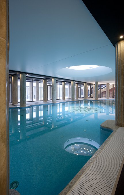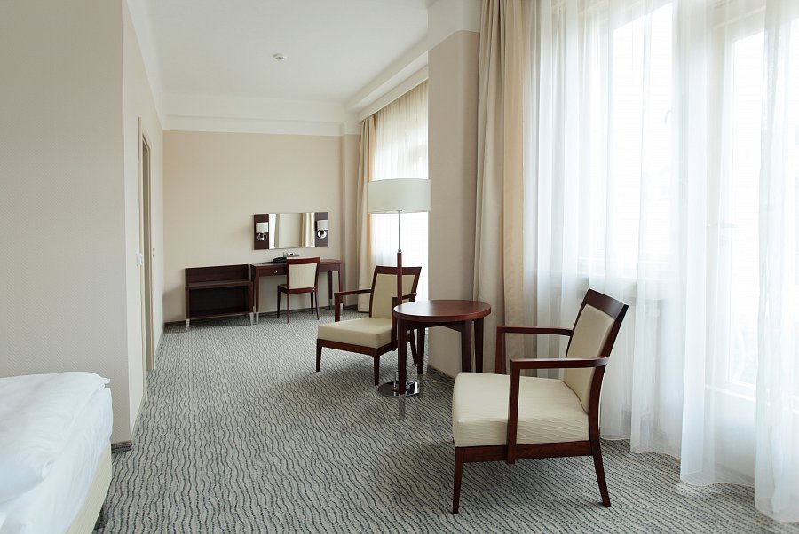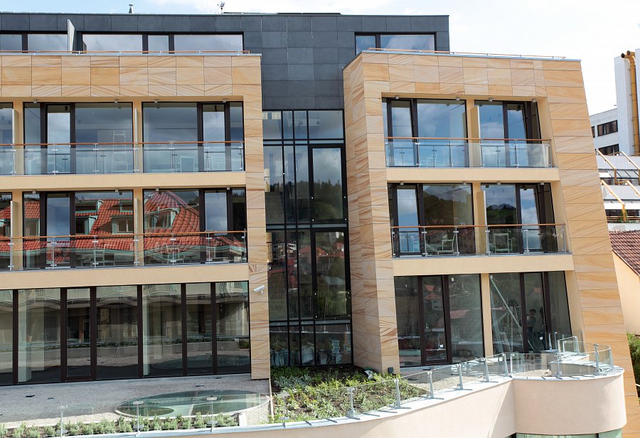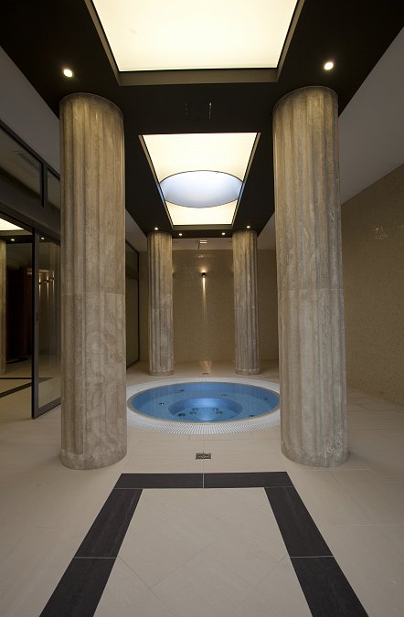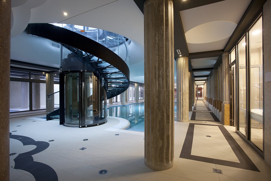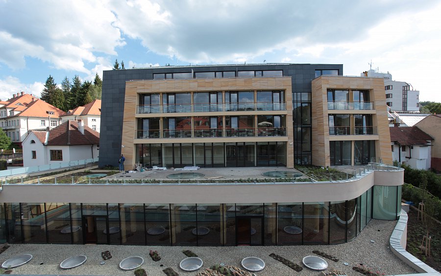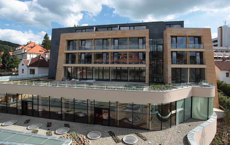 Kompletní rekonstrukce prvorepublikového luxusního hotelu Alexandria I a novostavba designového wellness hotelu Alexandria II. Po rekonstrukci hotel nabízí 58 pokojů se 106 lůžky, a navazuje tak na tradici původního objektu Alexandria I, který byl vyhlášeným místem pro setkávání všech významných hostů lázeňského města Luhačovice. Rekonstrukcí byla kompletně změněna dispozice třech ubytovacích podlaží, kdy vzniklo 23 luxusních hotelových pokojů, samozřejmě s vlastním sociálním zařízením, designově laděných v luxusu první republiky. Toto se opakuje i ve dvou podlažích společných prostor – klubu s tanečním parketem vyzdobeném fotografiemi prvorepublikových všem známých umělců i v barech a vše završuje tzv. „Francouzská restaurace“, jejíž interiér plný originálního křišťálu, velkoformátových obrazů apod. má jen umocnit gurmánské zážitky návštěvníků této restaurace, jejíž kuchyňské zázemí je vybaveno tou nejlepší varnou technikou. Obestavěný prostor: 82 470 m³ |