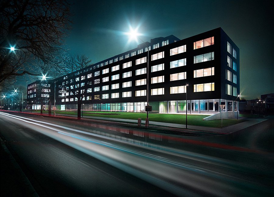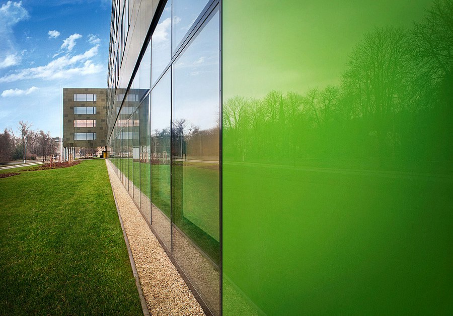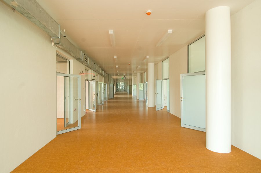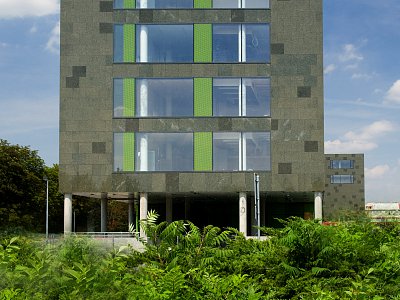 Nová fakulta stojí v centru města v lokalitě zvané Envelopa. Šestipodlažní budova přírodovědecké fakulty dostala podobu protáhlého kříže, přitom hlavní část pozemku zůstala nezastavěná a slouží jako park. V místě křížení je uvnitř budovy centrální atrium s kruhovým světlíkem, které má pro své uživatele významnou komunikační funkci. Za vstupem do budovy je umístěn informační pult objektu, studijní oddělení, blok seminárních místností, bufet a technické zázemí. V přízemí budovy se nacházejí zejména větší výukové prostory s prosklenými fasádami, které tak poskytují příjemný pohled do parku. V prvním a druhém patře jsou společné výukové prostory. V dalších třech patrech je prostor věnován vždy jednomu studijnímu oboru: chemii, fyzice a matematice. V prostorách určených chemickým laboratořím je pamatováno na bezpečnostní sprchy, pro případ potřísnění nebezpečnou látkou. Poslední podlaží je navrženo jako ustupující, aby objekt působil celkově nižším dojmem. Nachází se na něm děkanát fakulty, kabinet výuky jazyků, informační centrum a kafetérie, ze které je možné vyjít na terasu. Na jihovýchodní, více prosluněnou, stranu objektu, jsou umístěny sály s větší hloubkou, např. laboratoře, zasedací místnosti nebo počítačové učebny. Naopak na severozápadní straně narazíte na místnosti s malou hloubkou, např. kabinety pedagogů. Objekt Přírodovědecké fakulty UP v Olomouci se od podobných budov liší tím, že se tu uživatelé nepohybují v koridorech, ale spíše ve společných halových chodbách, kde jsou podél stěn skříňky studentů a malá respiria. Vzhledem k tomu, že je v budově umístěna řada strojů a přístrojů, byla navržena kročejová izolace podlah, aby se dále nepřenášely vibrace a hluk. |