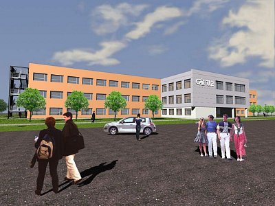 | Popis | Připravovaný pavilon je koncipován jako nepodsklepená administrativní budova se třemi nadzemními podlažími. Tvoří ji tři dilatační celky, odlišené materiálovým a barevným řešením obvodových plášťů. Zatímco pohledová vchodová část do objektu má fasádu z hliníkových kazet, fasády severního a jižního křídla jsou hladké plochy prolomené okny. U štítových stěn dotvářejí jejich vzhled otevřená ocelová požární schodiště, krytá žaluziemi.