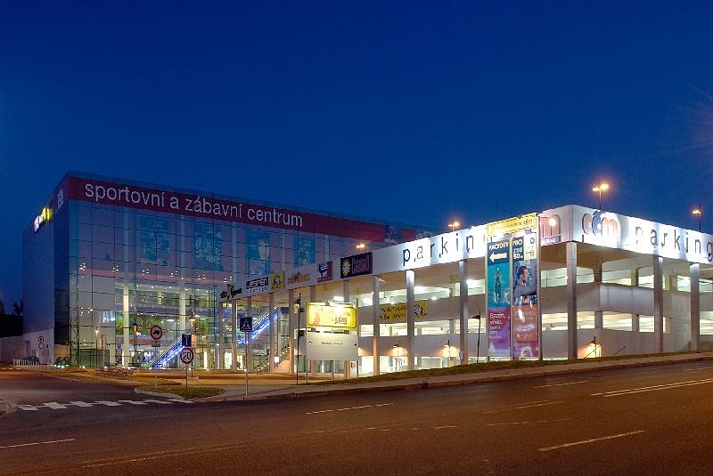 1. podlaží: nákupní středisko GIGASPORT a 25 m dlouhý bazén a regenerační centrum PRO FAKTORY 2. podlaží: fitnesscentrum PRO FAKTORY 3. podlaží: gastronomie a společné prostory 4. - 5. podlaží: 12 multiplex kinosálů VILLAGE CINEMAS s kapacitou 3 500 návštěvníků. Nosnou konstrukci tvoří železobetonový skelet. Vertikální komunikace uvnitř objektu zajišťují 3 dvojice eskalátorů v atriu na všechny výškové úrovně objektu, 2 nákladní výtahy a prosklený panoramatický výtah. Dominantou celého objektu je skleněná terčová fasáda na východní a zčásti na jižní a severní straně objektu. Ostatní obvodové stěny objektu tvoří opláštění provětrávanou fasádou s alucobondovým Objekt je spojen nástupním mostem s přilehlým Parkdeckem a spolu s ním tak tvoří komplexní centrum zábavy s možností parkování. |