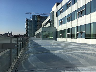 Český institut informatiky, robotiky a kybernetiky vyrostl v areálu vysokých škol v Dejvicích a navazuje přímo na areál ČVUT. Stavba zahrnovala stavební úpravy a přístavbu budovy B (Technická menza) a novostavbu budovy A. Novostavba je desetipodlažní budova se třemi podzemními podlažími a s parkovacím zakladačem s kapacitou 188 parkovacích míst, určeným pro pedagogy a zaměstnance ČVUT. Současná pětipodlažní budova původní Technické menzy (objekt B) byla přestavěna na sedmipodlažní budovu, která byla půdorysně rozšířena. Umístěny jsou zde pracovny, laboratoře, přednáškové a prezentační prostory, počítačové učebny a stravovací menza. To vše jako zázemí pro výzkumné a vývojové aktivity vědců z celého světa. Budovy jsou v nadzemní části propojeny dvěma spojovacími krčky, jeden na úrovni přízemí. Druhý je dvoupodlažní a propojuje 6. a 7. podlaží objektu B, s objektem A na úrovni 7. a 8. podlaží. ZAJÍMAVOSTI PROJEKTU Pro základy budovy A bylo vytěženo 25 000 m³ zeminy, které odvezlo 2500 nákladních vozidel o objemu 10 m³. Milánské stěny objektu A, které sloužily jako zajištění stavební jámy a zároveň jako nosná obvodová konstrukce podzemních podlaží nově vybudovaného objektu, dosáhly šířky 800 mm a v nejhlubším místě šly do hloubky 19 metrů pod terén. Při maximálním vytížení stavebních prací na jaře 2016 bylo na stavbě až 500 osob. Na stávajícím objektu – budově B – provedli stavbaři cca 1 200 sond pro ověření únosnosti stávajících nosných konstrukcí (míra vyztužení železobetonových prvků, krytí výztuže atd.), které nebylo možno provést při stavebně technickém průzkumu v rámci přípravy stavby. V některých místech byly odkryty viditelné a nedostatečně ošetřené výztuže stávajících železobetonových konstrukcí, které se později sanovaly. Pokud bychom za sebe poskládali vyztužující uhlíkové lamely, vznikl by pás o přibližné délce 4,5 kilometru. Po odbourání vrstev podlah bylo zjištěno 1 700 poruch stropních konstrukcí (otvory různé velikosti), které byly před zahájením další etapy stavby také sanovány. Zajímavým architektonickým prvkem je použití izolační membránové folie ETFE (ethylen-tetrafluorethylen) čiré barvy, kotvené k samostatné ocelové konstrukci, která je použita na objektu novostavby v úrovni 5. – 9. NP. Meziprostor zdvojené fasády – ETFE spolu s vnitřní skleněnou fasádou blokového typu - slouží jako sluneční kolektor. Větrání prostoru zdvojené fasády bude řízeno systémem měření a regulace, vzduch bude rekuperován a tak bude vytvářet fasádu přinášející energetické úspory. Proti nadměrnému ohřívání vnitřních prostor objektu A je použito stínění žaluziemi, umístěnými v prostoru zdvojené fasády, které jsou ovládány systémem MaR v závislosti na teplotě a osvětlení místností, společně a s progresivními technologiemi vytápění a chlazení (chladícími trámy v interiéru budovy) zajistí vnitřní optimální uživatelské prostředí. ETFE fasáda se používá z důvodu vysoké pevnosti a trvanlivosti tohoto materiálu při velkém spektru teplotního zatížení. Ve srovnání se sklem je lehká a nevyžaduje tak mohutnou nosnou konstrukci, dokonce propouští více světla. Díky svému povrchu má samočisticí schopnost, případné nečistoty tak stačí smývat déšť. Stejný materiál je použit také pro zastřešení respiria u budovy B. ETFE fasáda na budově A má pohledovou plochu o velikosti přibližně 2050 m² a střecha z ETFE na budově B 410 m², skutečná plocha „polštářů“ je samozřejmě větší. V České republice nebyla zatím v takovém rozsahu nikde realizována. Nová budova ČIIRC se nepyšní jen unikátní fasádou, ale i tzv. automatickým parkovacím zakladačem. Tato technologie s kapacitou 188 vozidel je umístěna v 1. až 3. podzemním podlaží. V 1. podzemním podlaží jsou umístěny předávací boxy a v ostatních dvou jsou vlastní parkovací „stání“. Tato jsou rozdělena do dvou kategorií podle výšky vozidla - do 1 500 mm a do max. 1 900 mm. Celková hmotnost vozidla nesmí přesáhnout 2 500 kg. Výdejní časy zakladače by se měly pohybovat v rozmezí 90 - 190 sekund. Technologie zahrnuje 5 předávacích boxů, 3 transportní výtahy a 2 točny, které zajišťují, že automobil je vždy řidiči vrácen tak, že je otočen do směru jízdy, čímž odpadá složité manévrování při výjezdu. Rozmístění vozidel v zakladači je určeno průmyslovým počítačem, který vozidla ukládá tak, aby docházelo k minimalizaci pohybů a co nejkratší výdejní době. V tuto chvíli je také největším v České republice. Pod přistaveným traktem budovy B se bude nacházet parkoviště pro 23 automobilů, z toho 7 je navrženo pro zdravotně postižené osoby. Za společnost HOCHTIEF CZ se na projektu podílel tým divize Pozemní stavby Čechy, závod Speciální činnosti divize Pozemní Čechy zajišťoval svými středisky část dodávky monolitických konstrukcí, elektrikářské práce, obkladačské práce a montáž dřevěných teras na budově A. Celkově nové budovy přinesou zázemí až pro 1 650 osob. Technické parametry: |