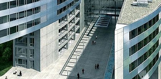 Budova je koncipována jako hřebenový systém, což vtipně koresponduje s názvem jedné z přilehlých ulic – Na Hřebenech II. Spojovací trakt propojuje čtyři na něj kolmá křídla. Budova je založena na železobetonové desce, která je podepřena pilotami. Nosnou konstrukci tvoří kombinovaný železobetonový skelet, který je opláštěn sklohliníkovou fasádou. Přirozený protipól jednolité a ucelené sklohliníkové fasádě tvoří plochy pohledového betonu, které jsou tvořeny z panelů, jež mají symbolizovat základní konstrukční schéma a docílit výrazu nezakryté monolitické konstrukce. Technologicky i prostorově je celá budova řešena tak, že ji lze rozdělit na dva vzájemně nezávislé objekty. Výška budov není jednotná - východní křídlo dominuje jedenácti podlažími a další tři křídla ustupující na západ jsou šestipodlažní. Půdorys budovy umožňuje umístění až 36 500 m² kancelářských ploch na typickém podlaží. Součástí celého komplexu je i restaurace. V podzemních podlažích jsou parkovací stání, archivy a technická zázemí. Celé administrativní centrum je obklopeno parkem, jehož zajímavým doplněním je několik vodních ploch spolu s vodopádem a „divokou řekou“. Díky svému výtečnému dopravnímu napojení jsou Kavčí Hory jednou z nejlepších lokalit pro kanceláře, které Praha v současné době nabízí. |