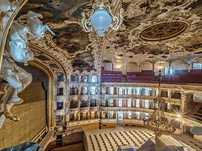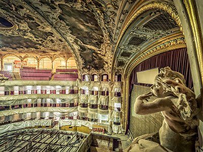 Státní opera Praha je jednou ze čtyř scén Národního divadla, které má operní i baletní repertoár a patří mezi nejvýznamnější v Evropě. Budova Státní opery je postavena v neorenesančním stylu s použitím řeckých korintských prvků. Z průčelí divadla vystupuje výrazný portikus nesený osmi sloupy, nad ním je terasa s dalšími šesti sloupy zakončenými korintskými hlavicemi. Nad sloupovím je umístěn tympanon s reliéfem, zobrazujícím alegorickou postavu básníka, který se po boji Orfea s divokými menádami, průvodkyněmi boha Dionýsa, ujímá lyry a na okřídleném Pegasovi směřuje na horu Olymp. Nad vrcholem tympanonu je socha Fámy s trubkou a palmovou ratolestí (někdy označovaná jako Veřejné mínění), vlevo vidíme boha Dionýsa, jehož vůz táhnou šelmy, a vpravo sochu Múzy Thálie. Budova a její zázemí jsou významnou historickou památkou. Již foyer vás uvádí do světa umění, kde se setkáte sochami a slavnostní výmalbou. Z vestibulu vede dvojí schodiště k lóžím a balkonům. Proti hlavnímu vchodu jsou umístěny dva vstupy do parteru. Lehkost a vzdušnost dodávají prostoru průhledy na všechna schodiště, vstupy do parteru, použití skla a zrcadel, světlá leštěná podlaha, bílá omítka a jemné zlacené štuky. Vše je doprovázeno výzdobou sochami a malbami. Neorenesanční exteriér tak plynule přechází do neorokokového interiéru. Celková šířka jeviště včetně bočních průchodů je 22 metrů, hloubka 16 metrů. Výška portálu dosahuje téměř 8 metrů a výška provaziště byla zdvižena při poslední rekonstrukci na 23 metrů. Hlediště původně pro 2000 osob (1/4 byla místa k stání), v současnosti kapacita více než 1 000 osob. V roce 1973 přibyla k historické budově ještě provozní budova s energocentrem, dílnami, kancelářemi, baletními sály, sborovým a nahrávacím sálem a pěti nadzemními podlažími. Objekt vyrostl na místě původního vinohradského parku a v současnosti již také patří mezi kulturní památky. Co se chystá: Obnova se dotkne historické a provozní části budovy. Historická budova prošla komplexnější rekonstrukcí při výstavbě provozní budovy v 70. letech minulého století. Od této doby byly prováděny pouze menší investiční zásahy, které odstraňovaly morální a fyzickou zastaralost jednotlivých dílčích částí. Téměř po 44 letech se tedy obě budovy dočkají významnějších stavebních a restaurátorských zásahů. Zásadní změnou projdou rozvody, zejména elektroinstalace, vody, topení, odpadů a vysušení vlhkosti. Proměnou projde také horní i spodní jeviště a výzdoba hledištní části, opraví se šatny umělců i sociální zázemí. V provozní budově dojde k renovaci kanceláří, zkušeben, baletního a sborového sálu. |
